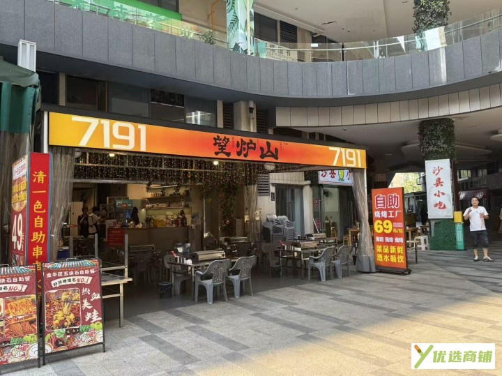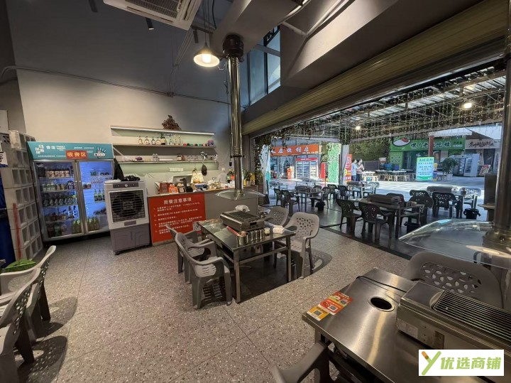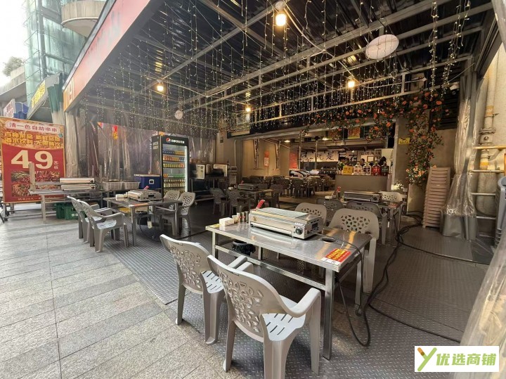我们现在做的是夜宵店,在附近商圈也是有很好的口碑,现在线上运营也是有公司扶持,每天可以随时蹲点看生意,现在每天流水4千左右,后面厨房也是很宽敞,,很好操作,外面这个外摆区域很大,可以不用收进来的,这个外摆区域,是按照物业要求弄好的,非常巴适,我们做的烤肉,用电很大,做了扩容,我们还搭建了二楼,当时是混泥土弄出来的,承重能力不需要担心,上面摆了6个桌子,还弄了个仓库,我们这个铺子接手过来就是吃票子的,有兴趣的老板,可以联系了